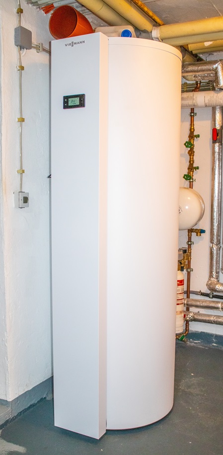 Also war klar, dass zur Lösung der Warmwasserspeicher ohnehin ausgetauscht werden musste. Damit bot sich aus unserer Sicht die effektivere Variante, einen Brauchwasserspeicher mit eingebauter Wärmepumpe zu installieren.