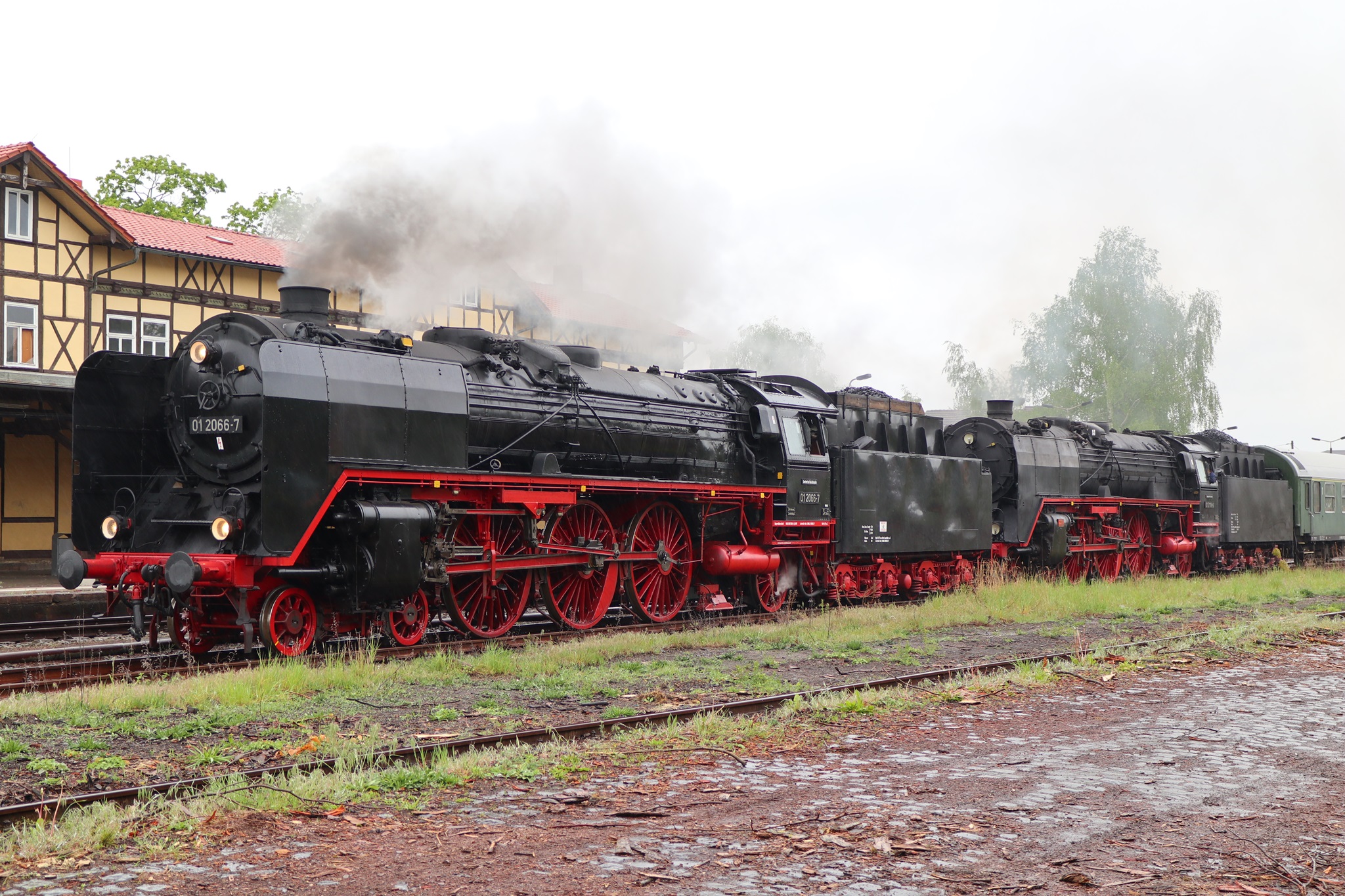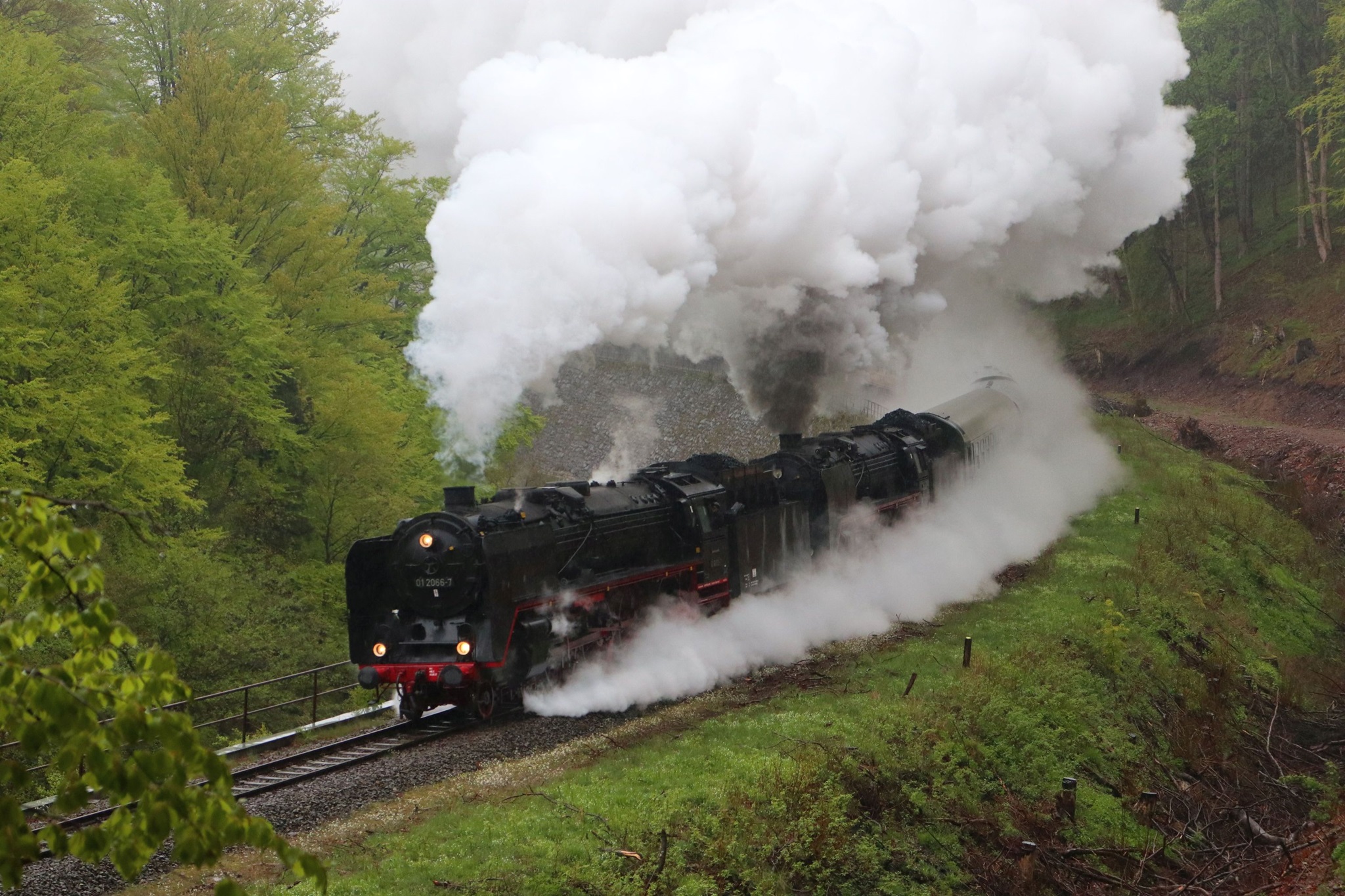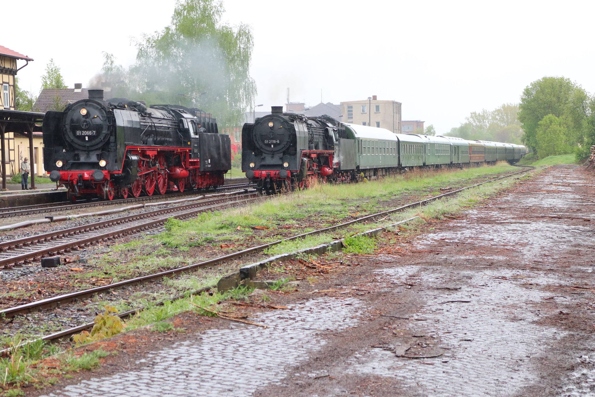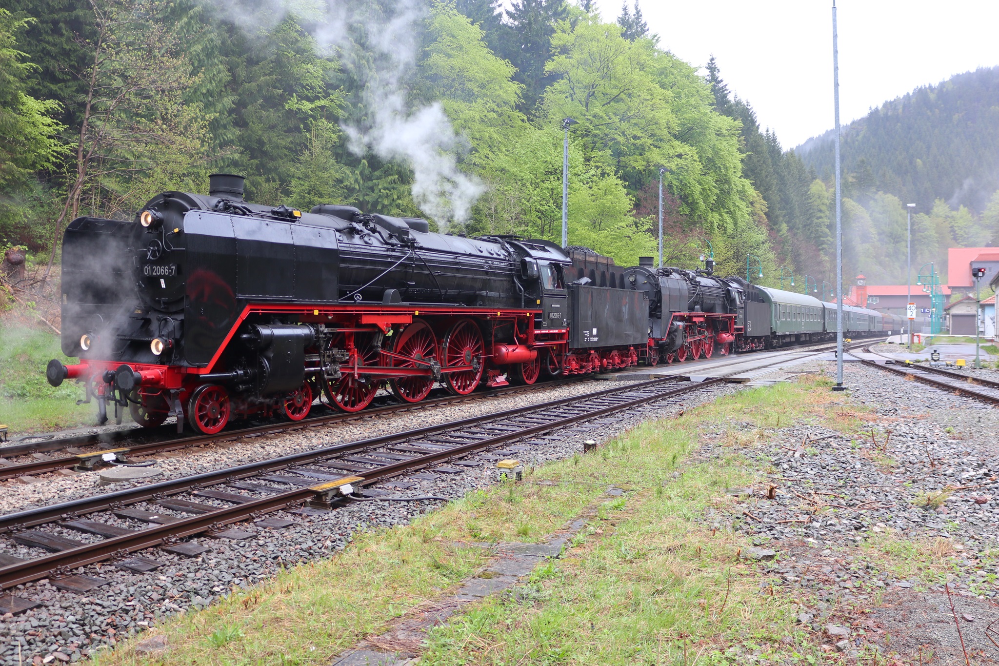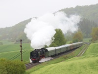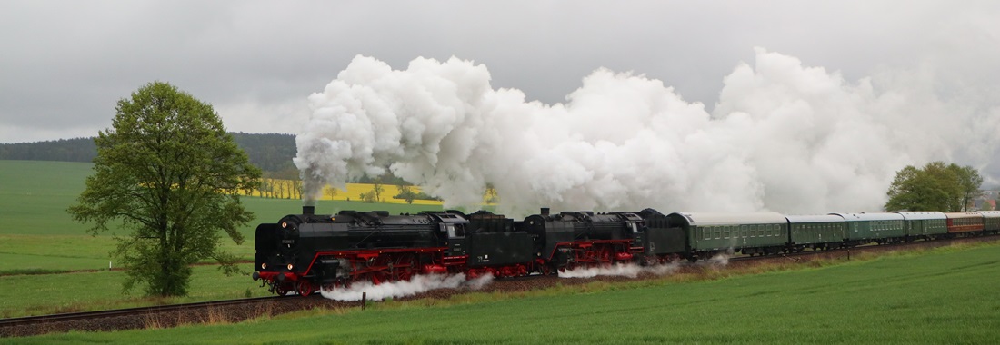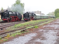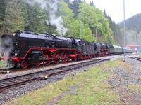 Am 11. und 12.5.2019 luden die IGE Werrabahn und das Plandampfteam zur Veranstaltung "Große Ohren" mit 01 2066-7 (Bayrisches Eisenbahnmuseum) und 01 2118-6 (Historisdche Eisenbahn Frankfurt). Abends am 10.5.2019 bestand die Gelegenheit zum Fotographieren im Museums-Bw Arnstadt. Am 11.5.2019 wurde im Dauerregen die Strecke Arnstadt - Oberhof - Meiningen - Bad Salzungen - Eisenach befahren. Der Abschnitt Gräfenrode-Gehlberg wurde zweimal in Doppeltraktion befahren. Von Meinigen bis Immelborm waren beide Maschinen einzeln unterwegs, um den Schlussabschnitt wieder in Doppeltraktion zurückzulegen. Am 12.5.2019 hatte ich leider keine Gelegenheit zur Teilnahme.