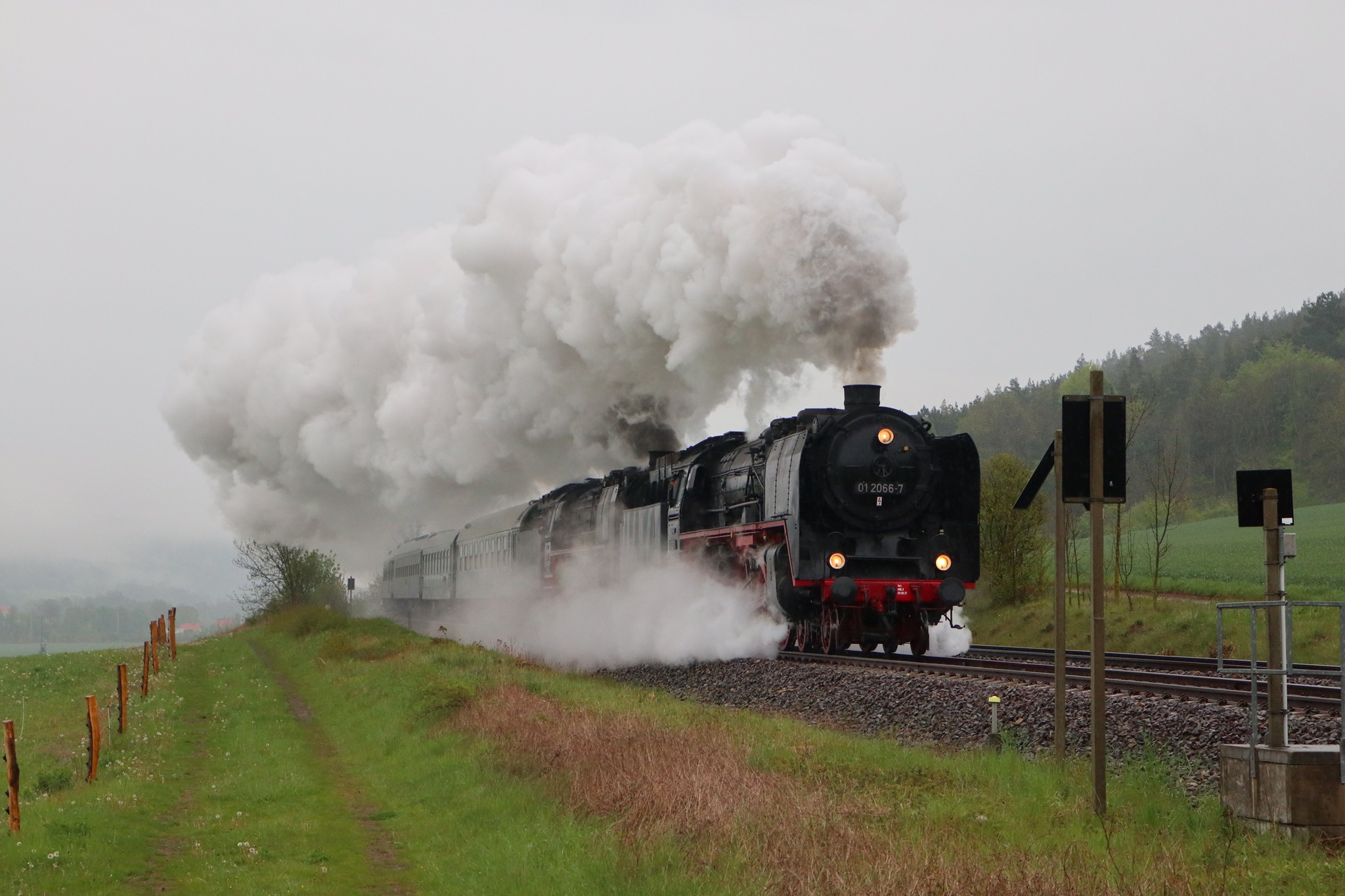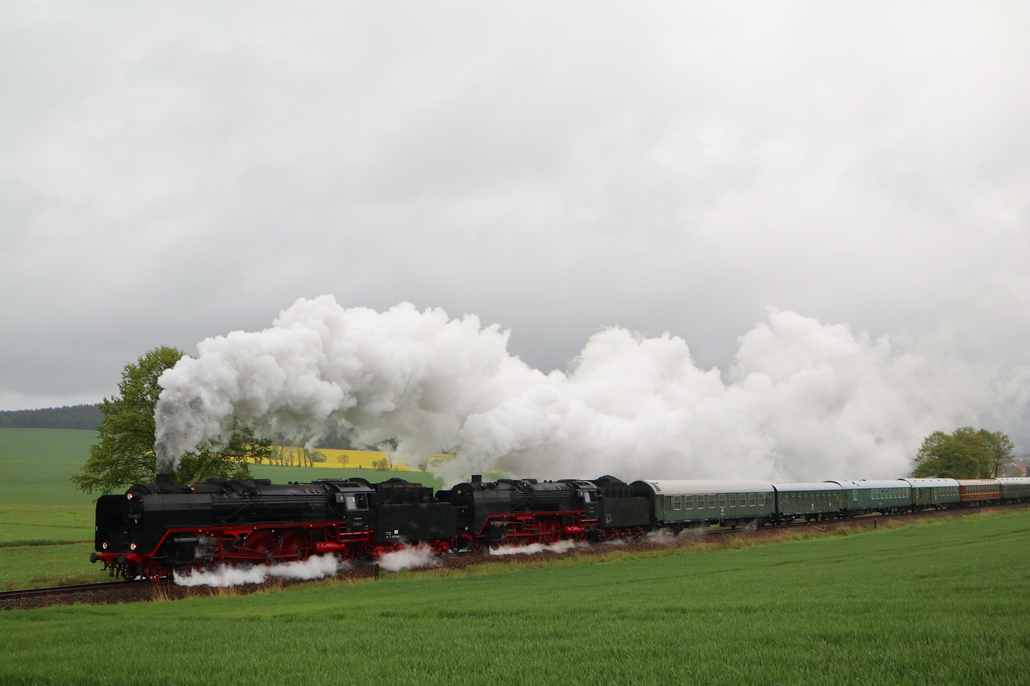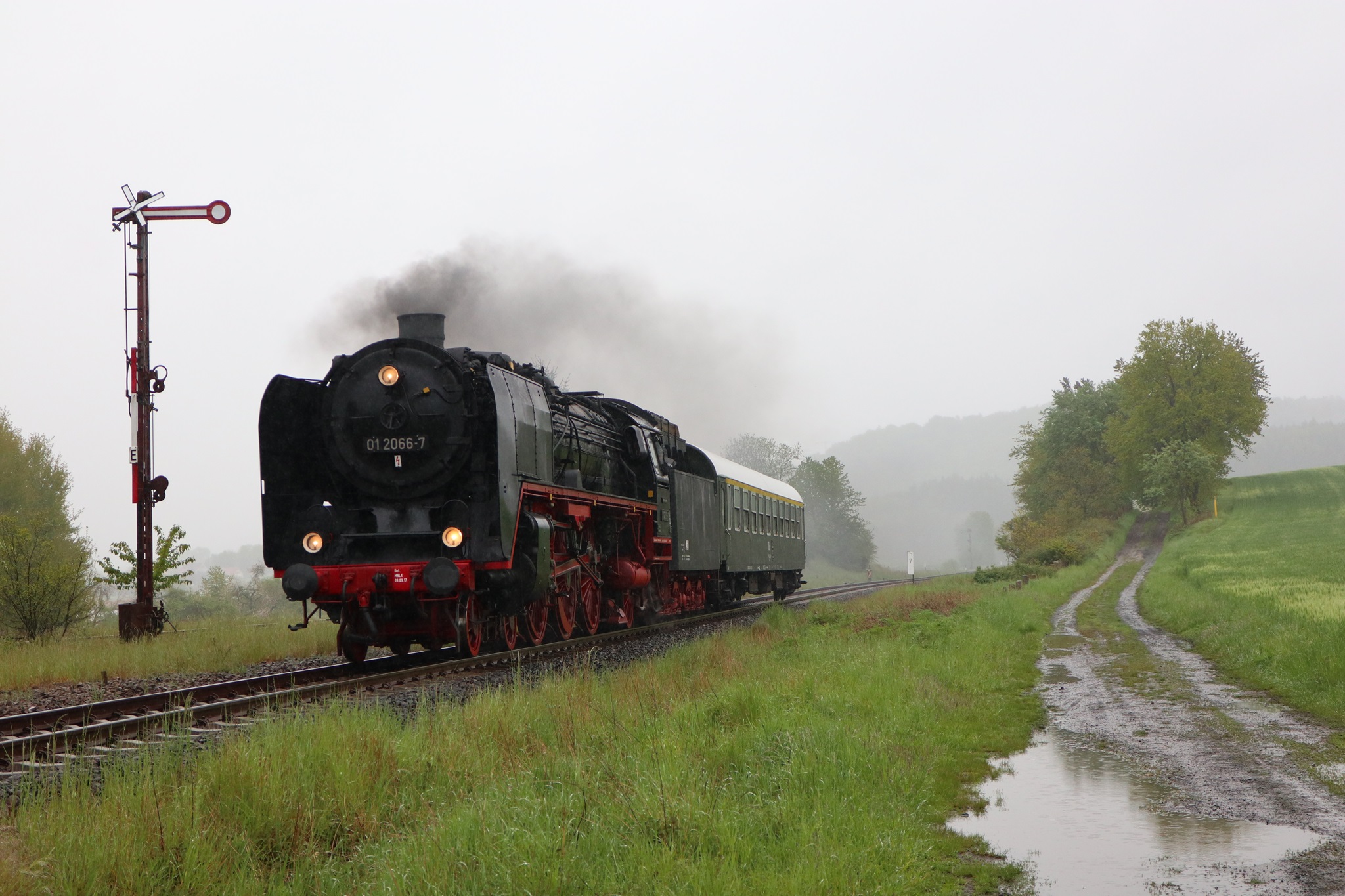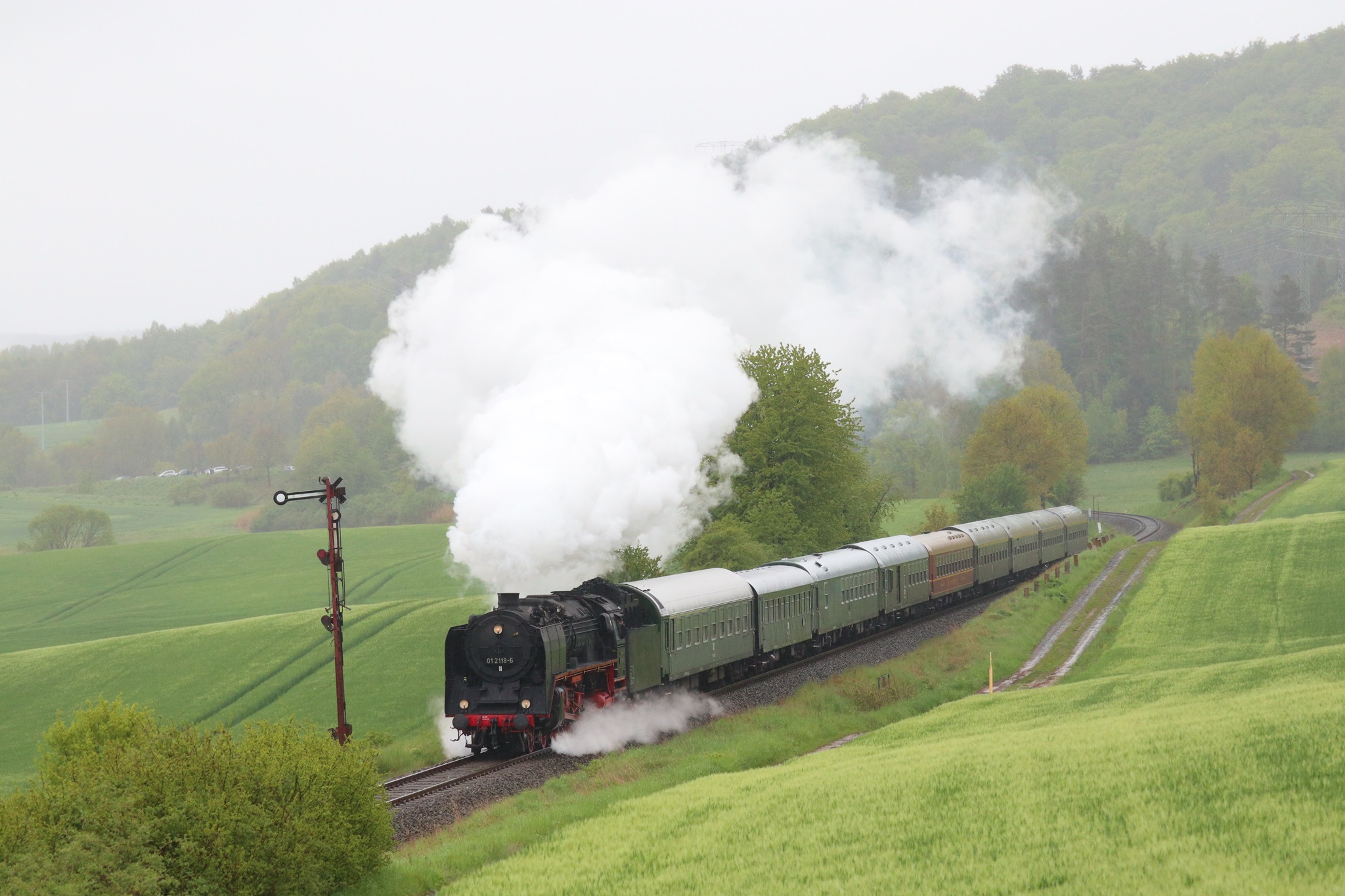 Am 11. und 12.5.2019 luden die IGE Werrabahn und das Plandampfteam zur Veranstaltung "Große Ohren" mit 01 2066-7 (Bayrisches Eisenbahnmuseum) und 01 2118-6 (Historisdche Eisenbahn Frankfurt). Abends am 10.5.2019 bestand die Gelegenheit zum Fotographieren im Museums-Bw Arnstadt. Am 11.5.2019 wurde im Dauerregen die Strecke Arnstadt - Oberhof - Meiningen - Bad Salzungen - Eisenach befahren. Der Abschnitt Gräfenrode-Gehlberg wurde zweimal in Doppeltraktion befahren. Von Meinigen bis Immelborm waren beide Maschinen einzeln unterwegs, um den Schlussabschnitt wieder in Doppeltraktion zurückzulegen. Am 12.5.2019 hatte ich leider keine Gelegenheit zur Teilnahme.