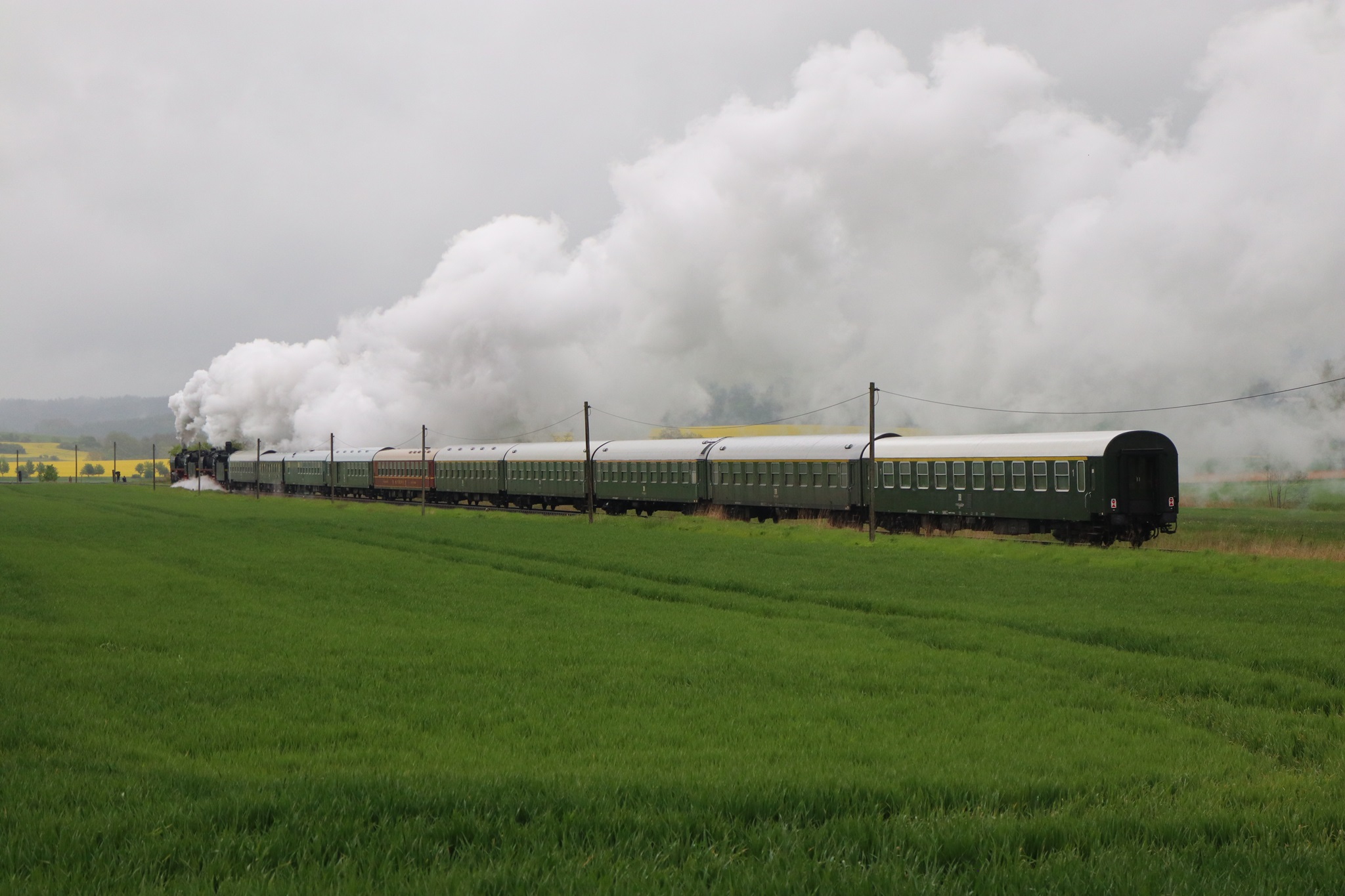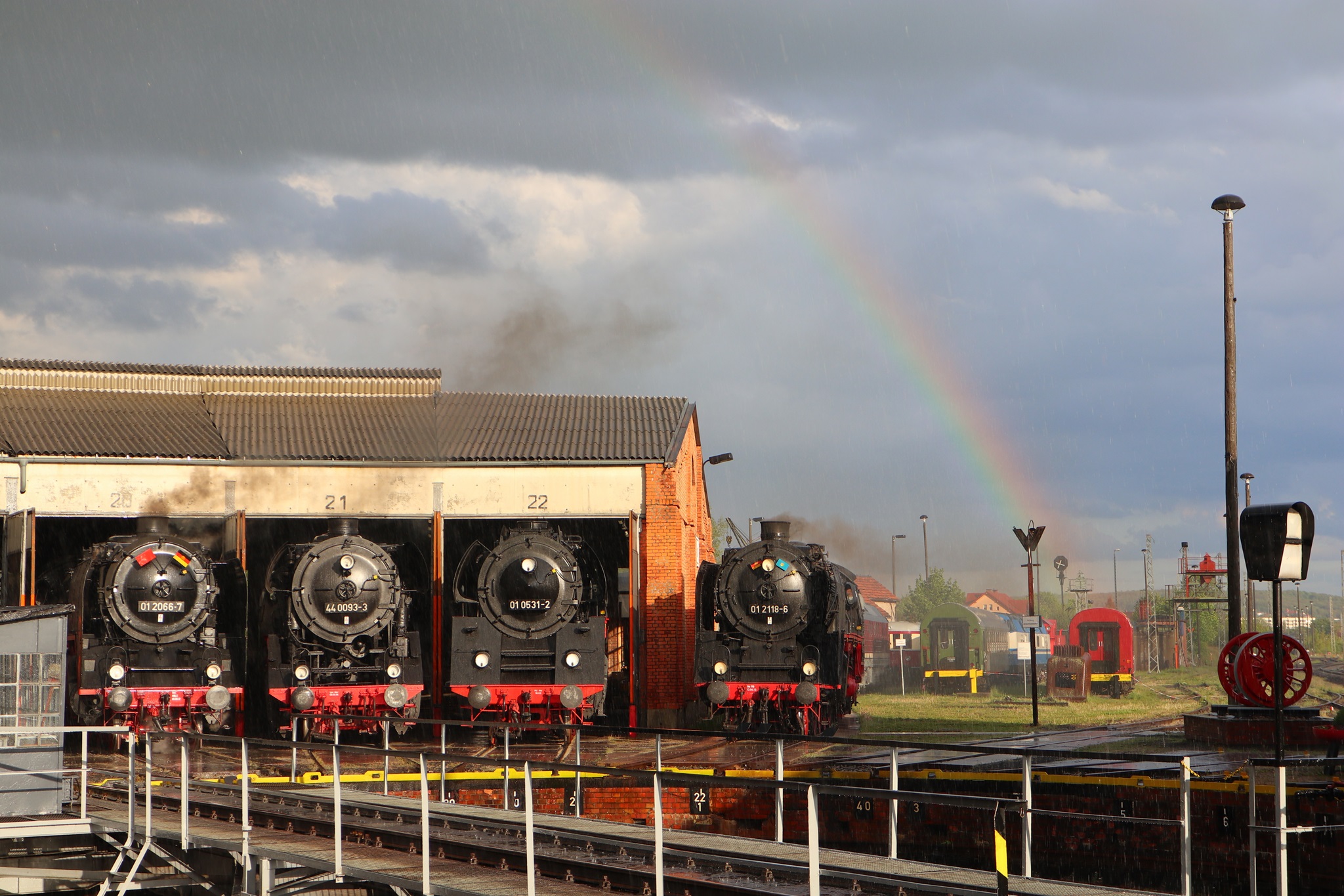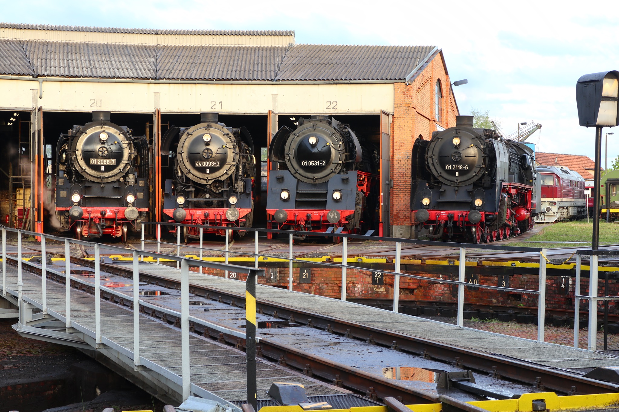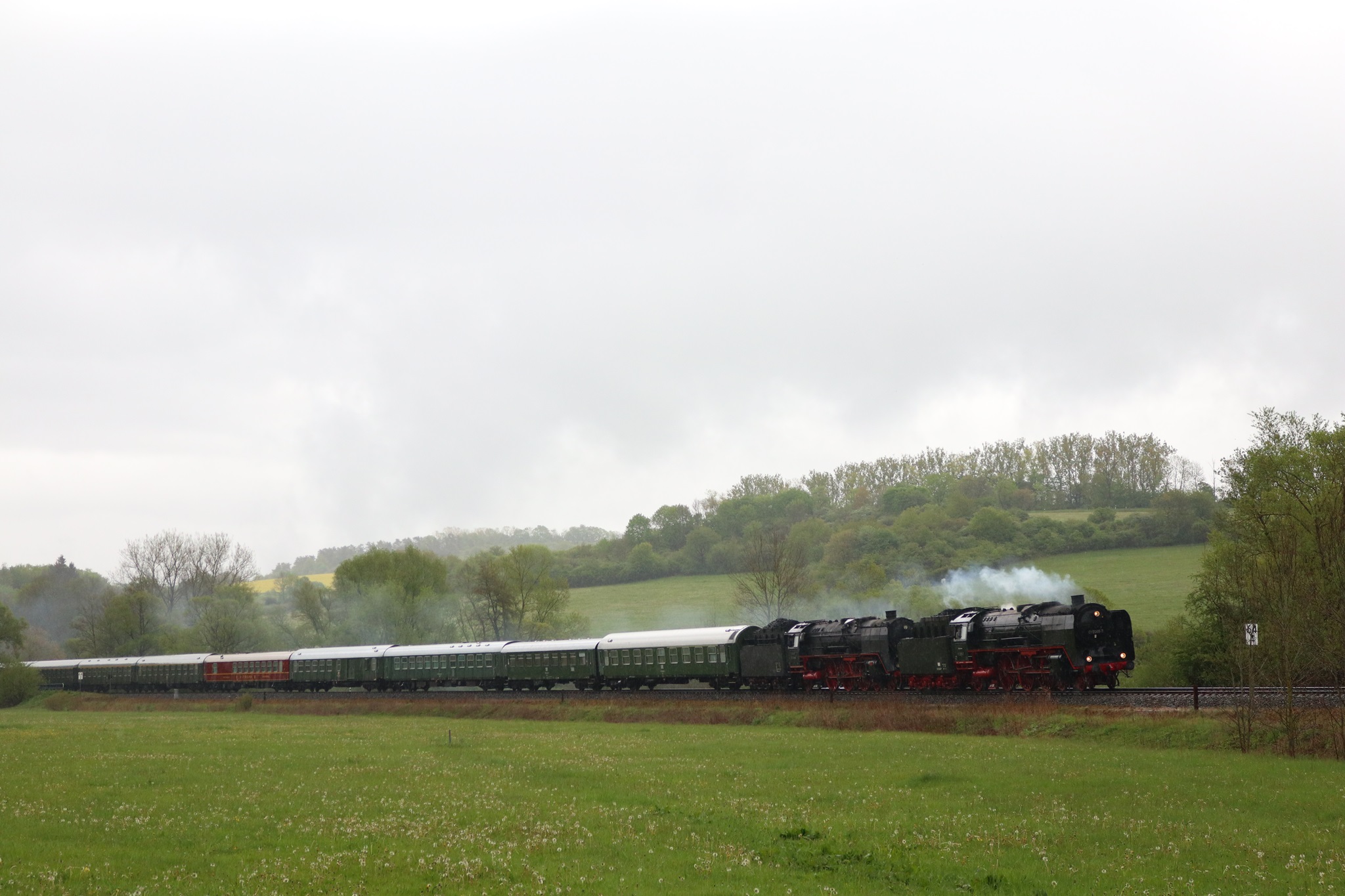 Am 11. und 12.5.2019 luden die IGE Werrabahn und das Plandampfteam zur Veranstaltung "Große Ohren" mit 01 2066-7 (Bayrisches Eisenbahnmuseum) und 01 2118-6 (Historisdche Eisenbahn Frankfurt). Abends am 10.5.2019 bestand die Gelegenheit zum Fotographieren im Museums-Bw Arnstadt. Am 11.5.2019 wurde im Dauerregen die Strecke Arnstadt - Oberhof - Meiningen - Bad Salzungen - Eisenach befahren. Der Abschnitt Gräfenrode-Gehlberg wurde zweimal in Doppeltraktion befahren. Von Meinigen bis Immelborm waren beide Maschinen einzeln unterwegs, um den Schlussabschnitt wieder in Doppeltraktion zurückzulegen. Am 12.5.2019 hatte ich leider keine Gelegenheit zur Teilnahme.