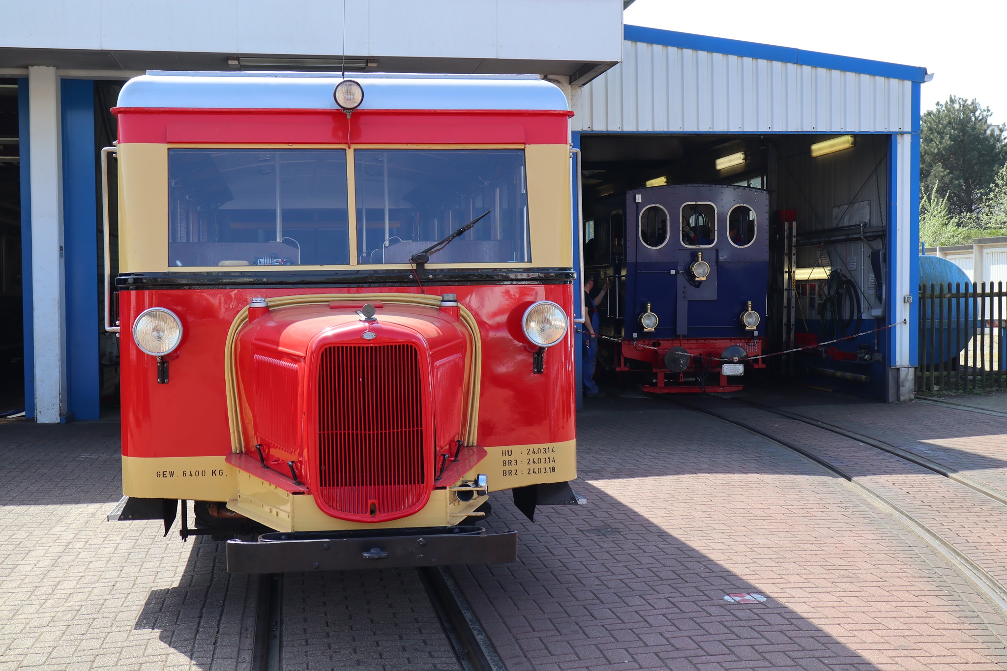 T1 und Dampflok Borkum am 24.4.2019 im Werkstattbereich.