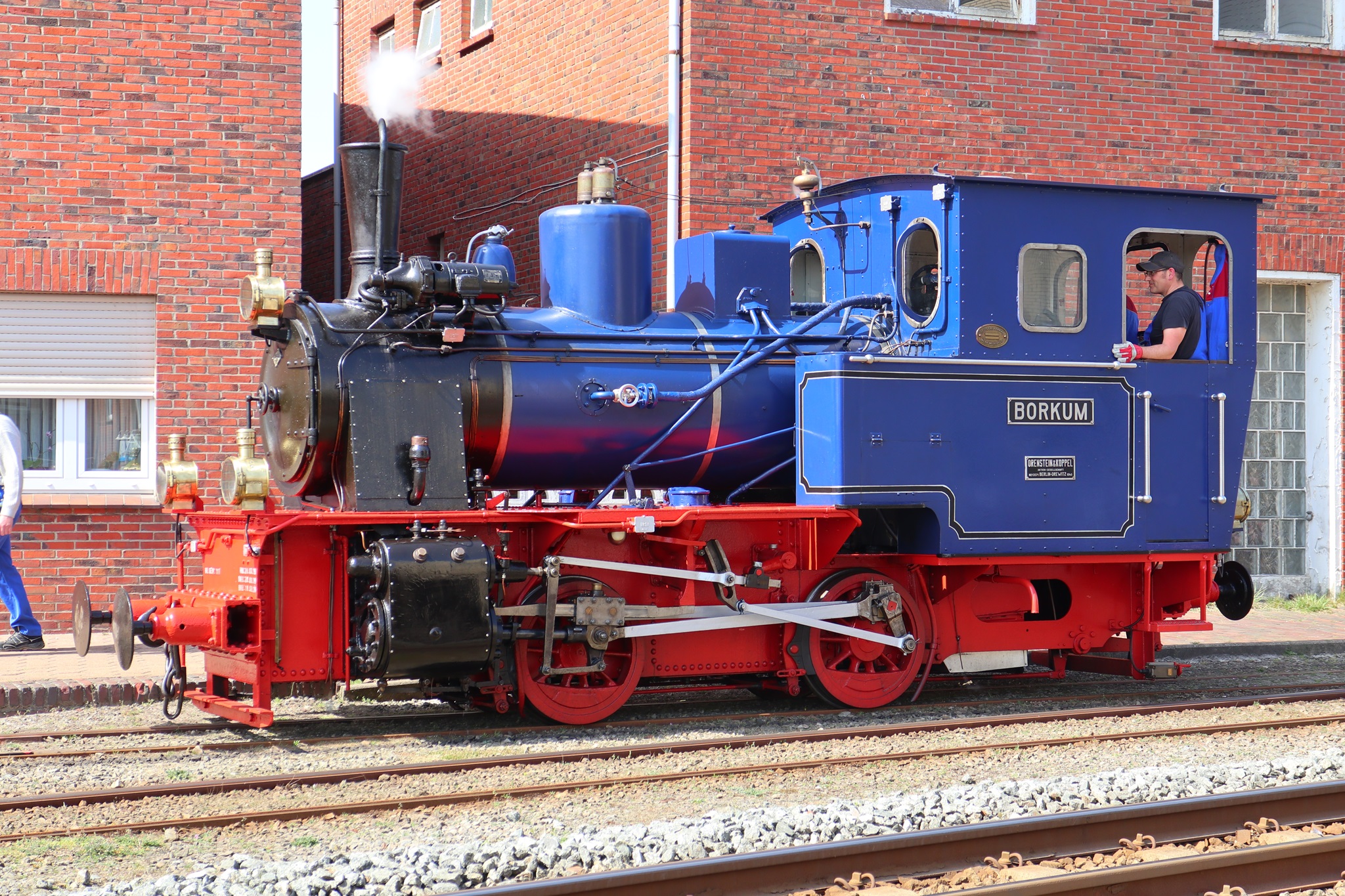 Dampflok Borkum am 24.4.2019 beim Ausrücken aus dem Depot.