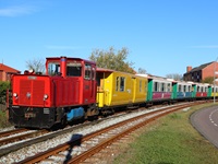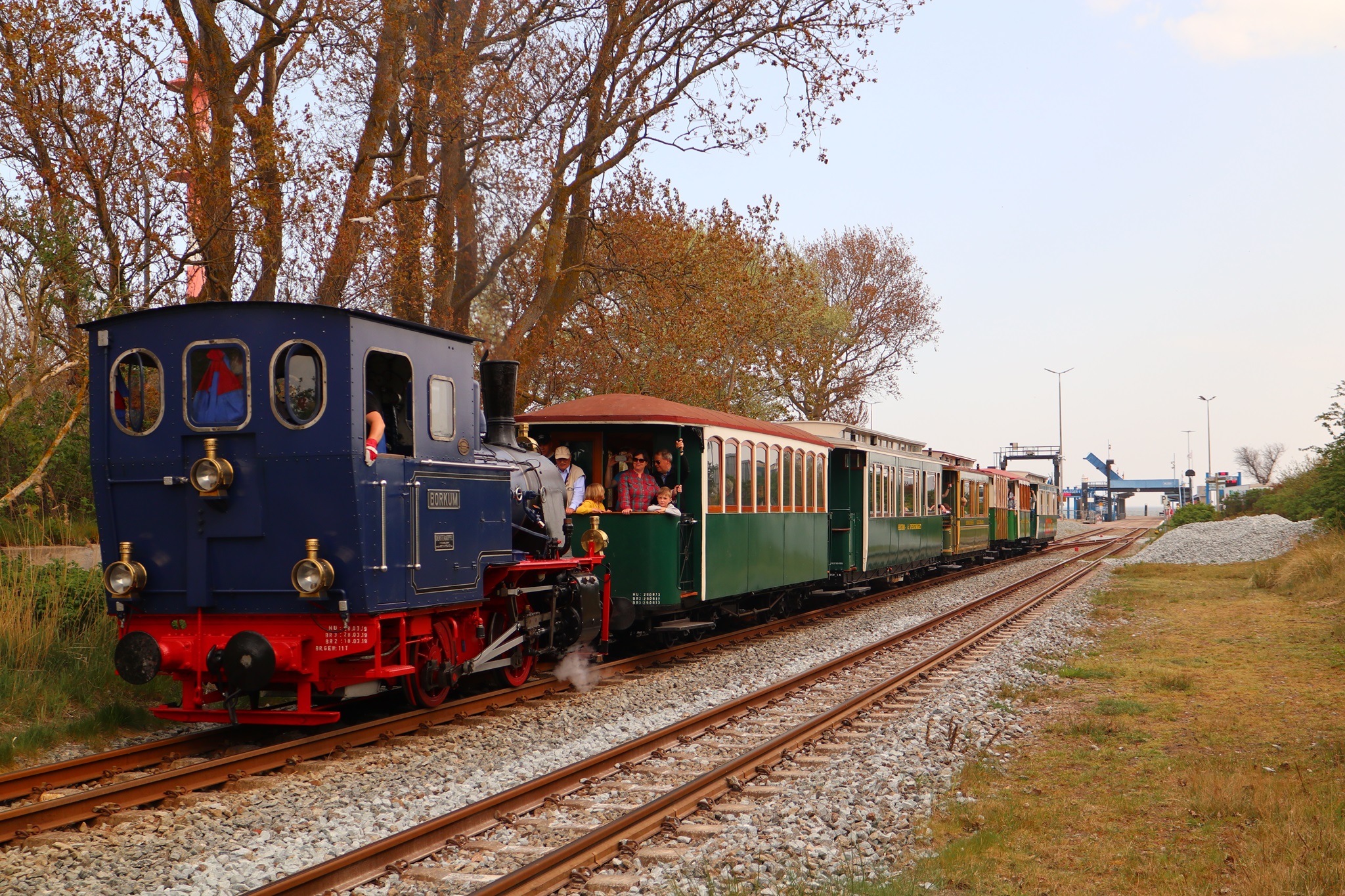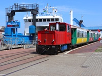 Dampflok Borkum mit dem Nostalgiezug am 24.4.2019 auf dem Rückweg im Hafenbereich.